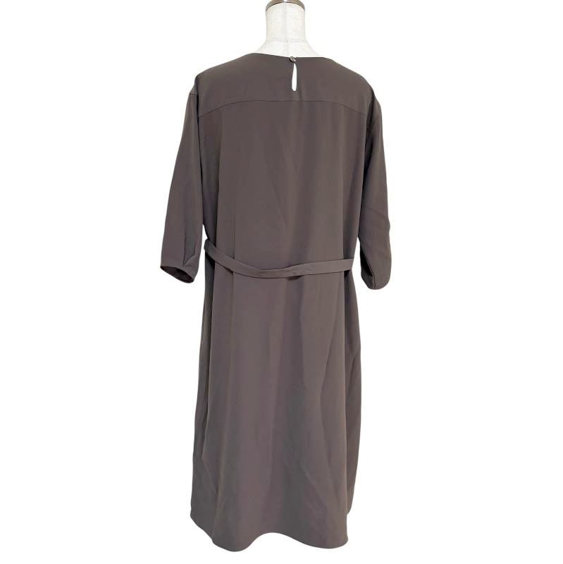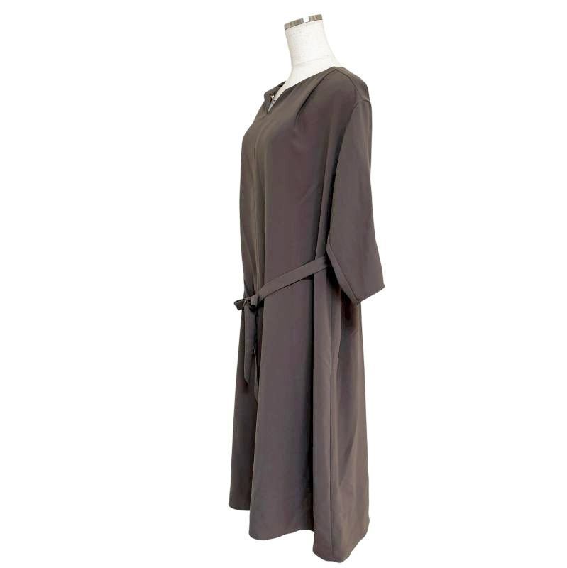 グリーンレーベルリラクシング ユナイテッドアローズ レディースロングワンピース 7分袖 ウエストリボン F 茶色 ダークブラウン [f-11120]