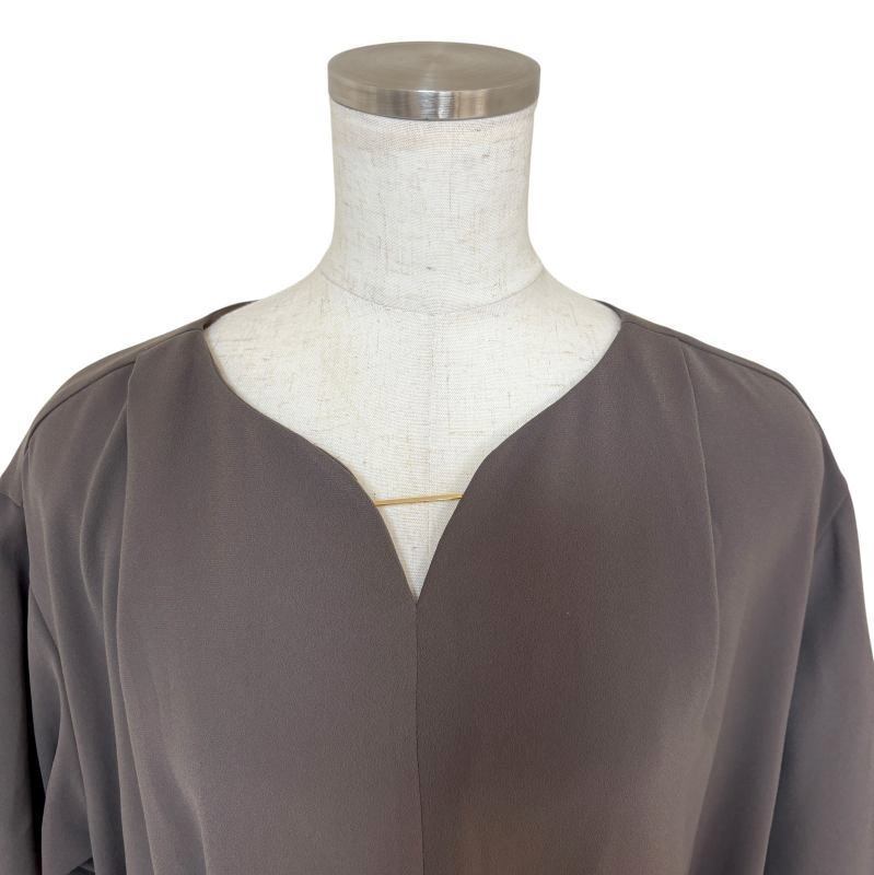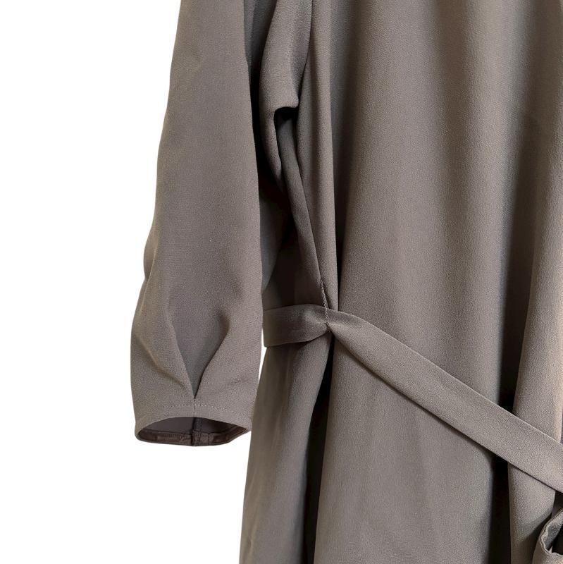 落ち着いたダークブラウンの色合いが大人らしい雰囲気を演出し、秋冬の装いにもぴったり。7分袖で腕まわりをすっきり見せ、ウエストリボンが女性らしいシルエットを引き立てます。ロング丈なので上品な印象があり、日常使いからお出かけシーンまで幅広く活躍。生地感もしっかりしており、美しいラインを保ちながら快適に着用いただけます。使用頻度が少なく、汚れや傷のない美品で、使用感もほとんど感じられません。大切に保管されていた一着ですので、安心してお楽しみいただけます。