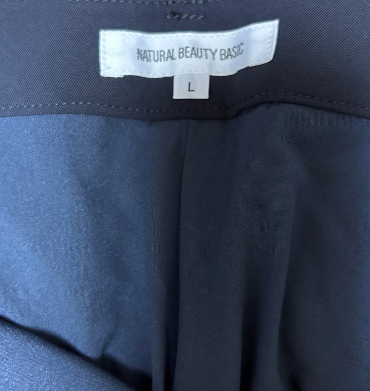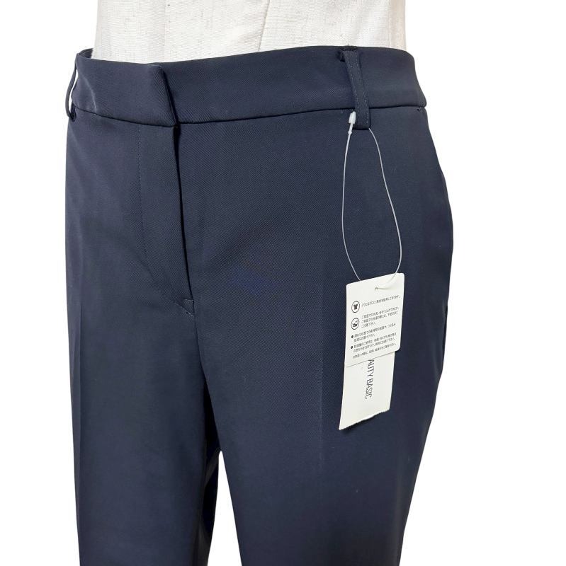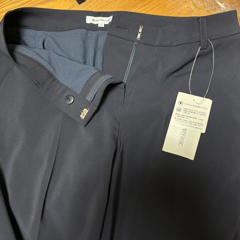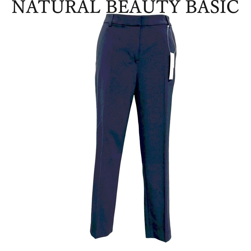 ◆ランク(商品の状態)◆Sタグ付き新品。ナチュラルビューティベーシックのレディーススラックスパンツ、ネイビーです。シンプルで洗練された無地デザインは、オフィスカジュアルからお出かけまで幅広く活躍します。程よいゆとりのあるシルエットで、快適な履き心地を実現。素材はしなやかで上質感があり、きれいめスタイルをさりげなく演出します。サイズはLで、日常の着用にもぴったりです。オフィス、仕事用として使えるセンタープレスパンツ。さらさら素材です。ストレッチあり。透け感なし。ポケットあり。裏地あり。