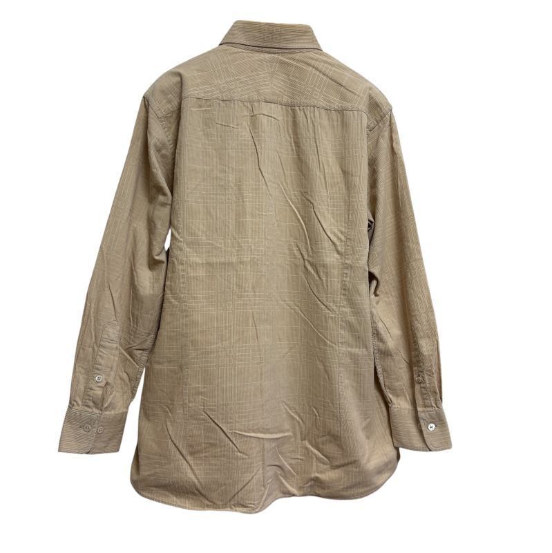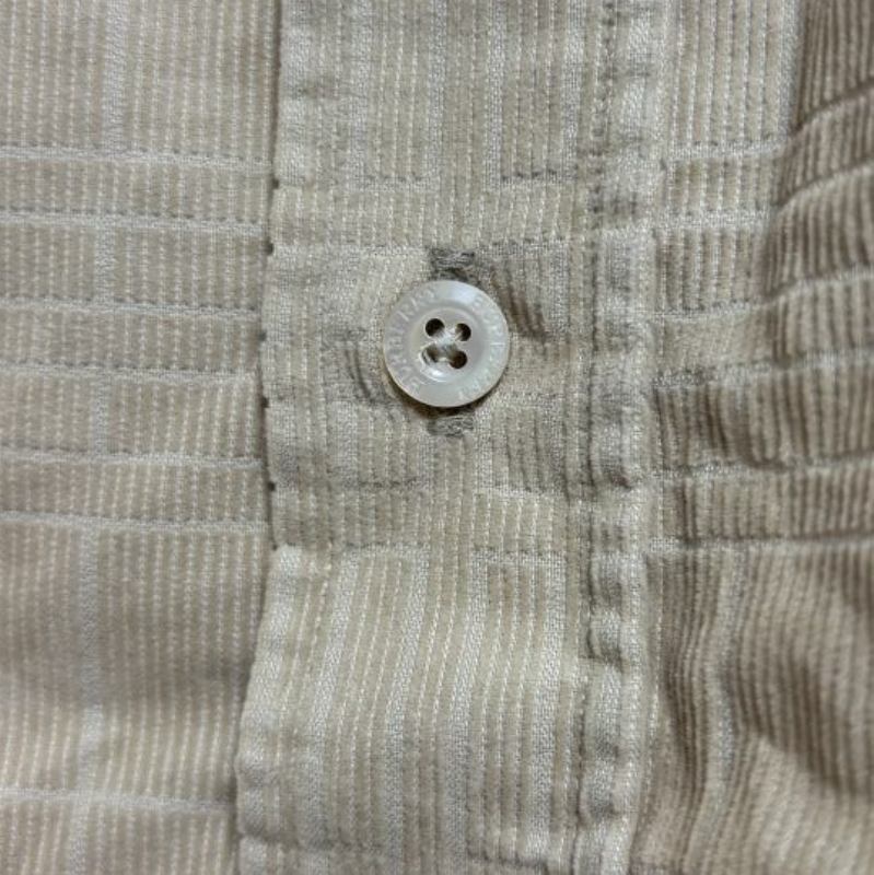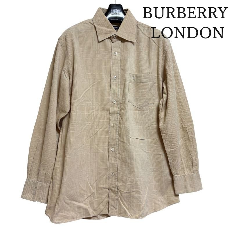 バーバリーロンドンのメンズ長袖コーデュロイシャツ、ベージュのチェック柄です。柔らかく温かみのあるコーデュロイ素材で、秋冬のカジュアルスタイルにぴったり。定番のチェックデザインが上品で、カジュアルからきれいめまで幅広く活躍します。襟付きのクラシカルなデザインで、重ね着もしやすく着回し力も抜群です。状態は非常に良好で、目立つ汚れや傷はなく、使用感もほとんど感じられない美品です。落ち着いた色味と素材感で長く愛用いただける一枚です。