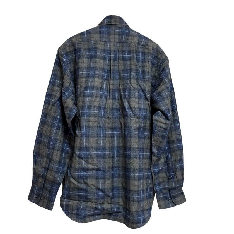 ダンロップ メンズ ネルシャツ アウトドアシャツ チェックシャツ グレー 青 L [men-2108]