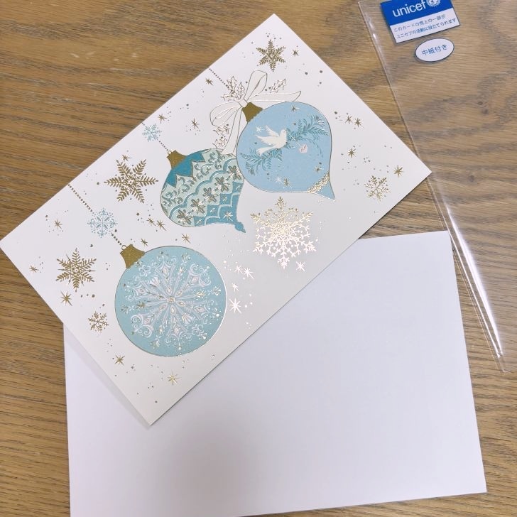 ユニセフ クリスマスカード グリーティングカード ブルー キラキラ 雪結晶