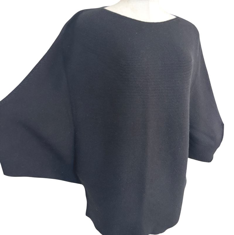 ユニクロ レディース ニット 3Dコットン ドルマンスリーブ セーター 7分袖 黒無地 ブラック M [lk-2050]