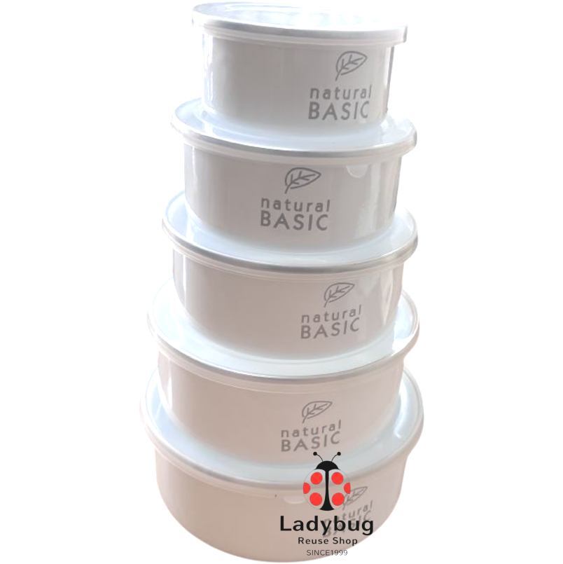 入れ子式 ホーローボウル 蓋付き 食品容器 タッパー 5個セット ホワイト [z-3979]