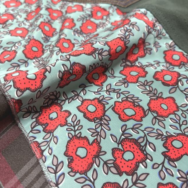 カットソー素材とさらさら素材の花柄、背中はえんじ、