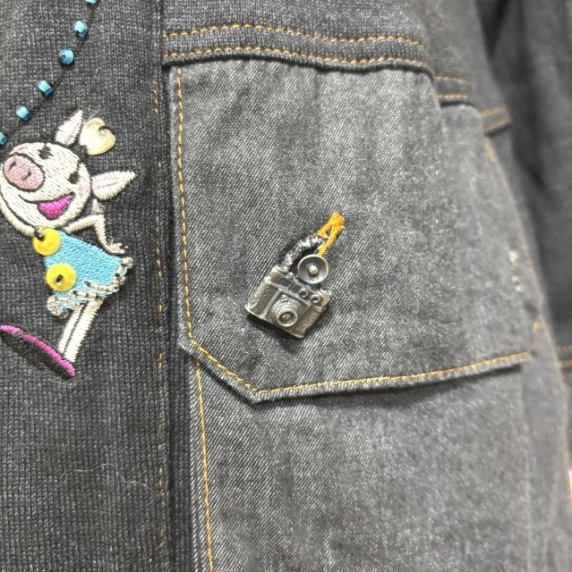 ポケットにはカメラの形の金属製ボタンがついていてとってもかわいいです。