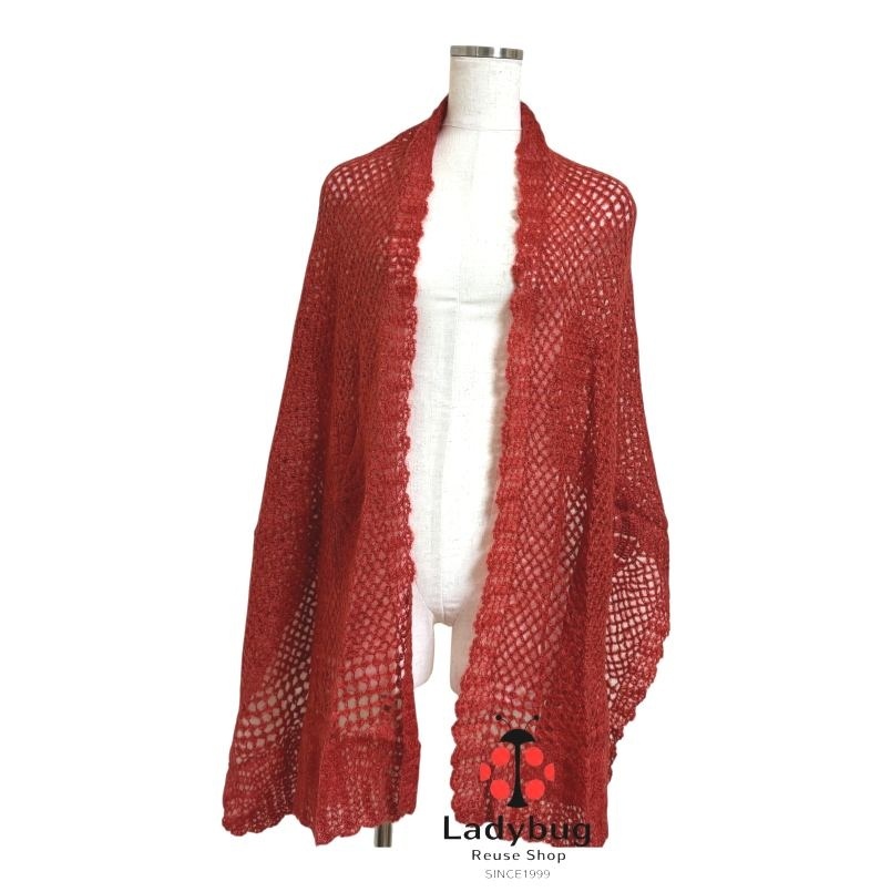 ハンドメイド かぎ針編み ニットストール 着物ショール 大判ニットマフラー テラコッタ レッド系 モヘア [ac-3805]