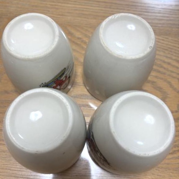不二家の人気キャラクター「ぺこちゃん」が描かれた、約50年前のフリーカップ4個セットです。