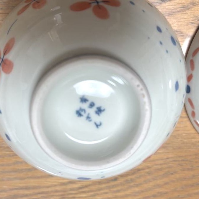 新品。長期保管品でしたのできれいに洗いました。有田焼・彩山の飯椀(茶碗)、女の子柄の2個セットです。