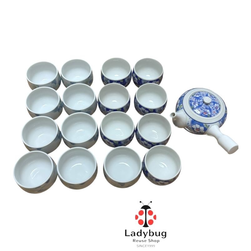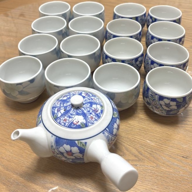 中古ですがとてもきれいに保管されておりました。定番のセット。急須1個、湯飲み16個ございますので大人数のお客様に対応できます。