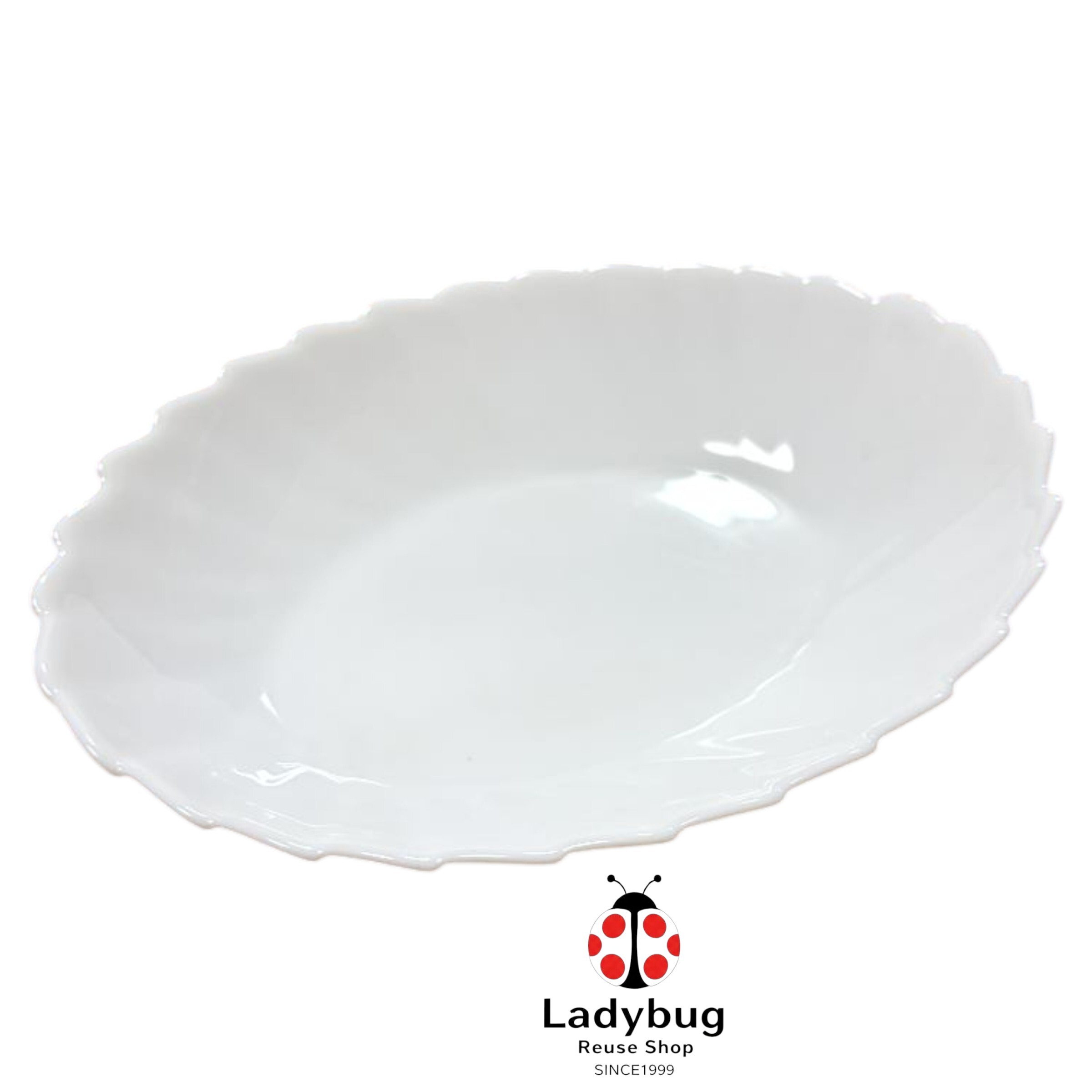 ヤマザキ春のパンまつり2003年の限定景品、白いオーバルボールです。波形楕円の上品なデザインで、スープ皿やカレー皿、グラタン皿として幅広く活躍。非売品の当時物で昭和平成レトロ食器として人気があり、コレクターにもおすすめの美品です。